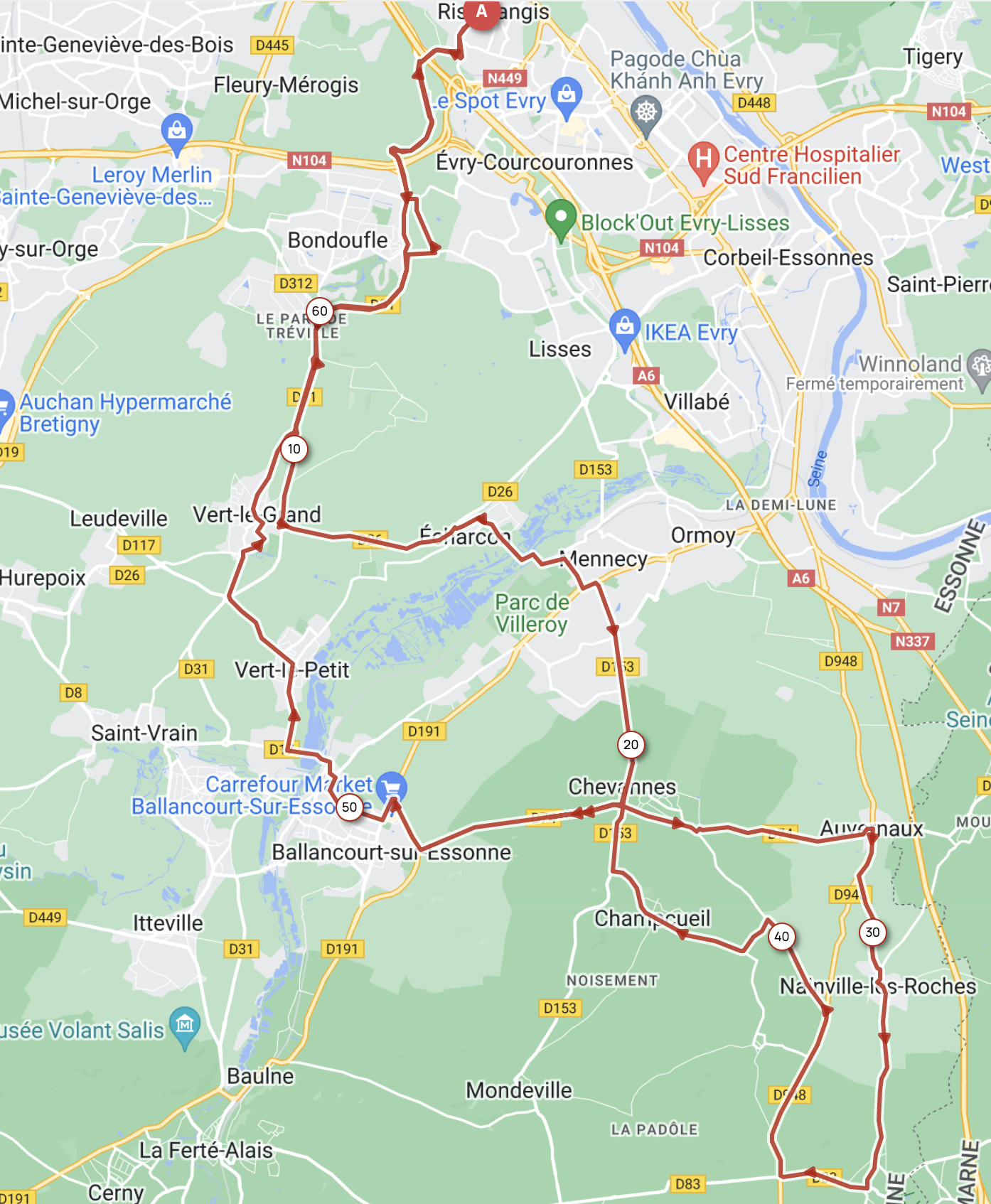 Nainville-les-Roches Soisy/E Carref. D83/D948 Beauvais Champcueil Chevannes Ballancourt (Gare) Le Bouchet Vert-le-Petit Vert-le-Grand Bondoufle Ris-Orangis