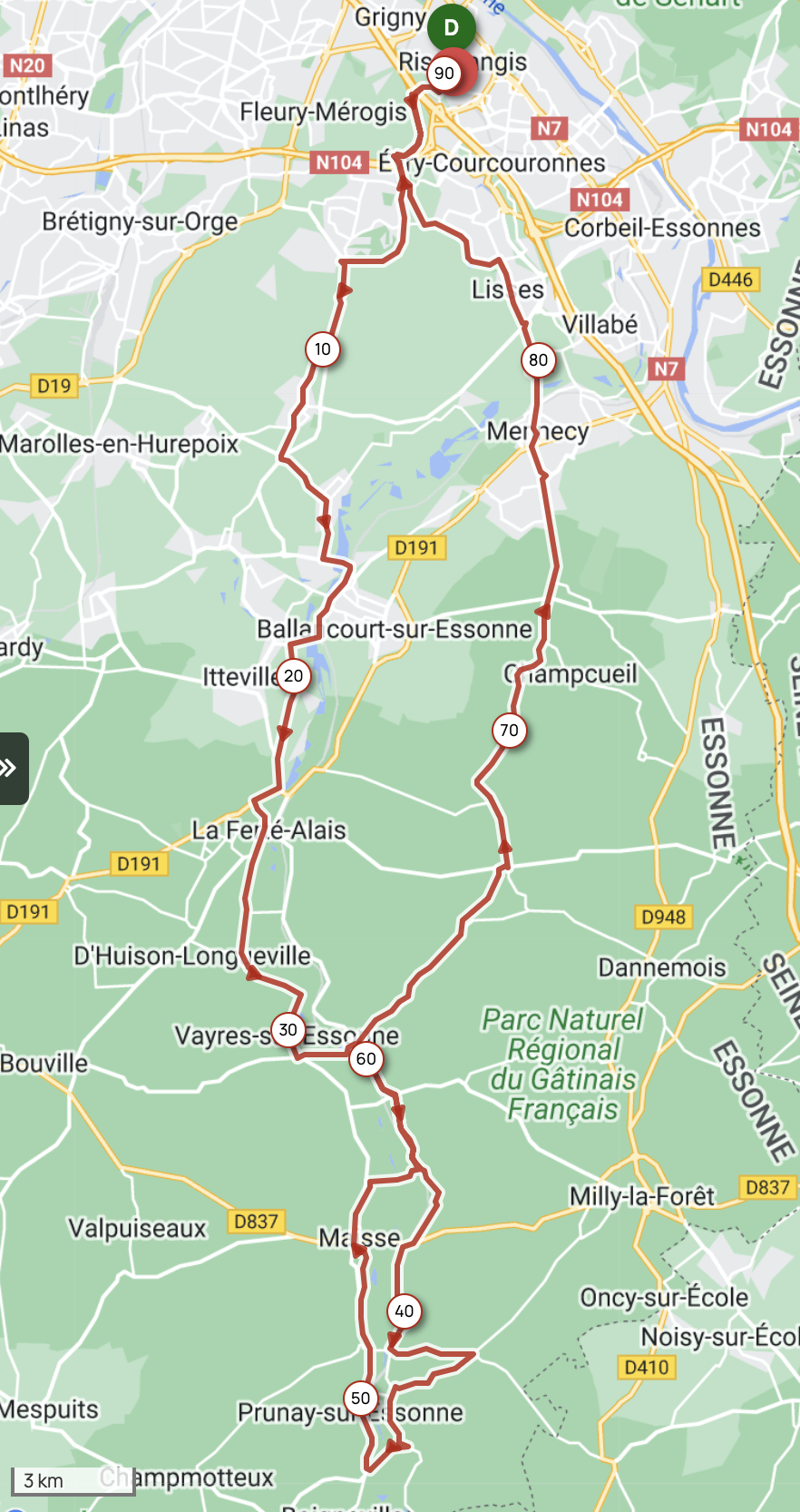 Ballancourt/E Itteville La Ferté-Alais D’Huison Vayres/E Boutigny/E Jarcy Audigers Maisse Gironville/E Carrrefour D1/D101 Buno-Bonneveau Chantambre Boigneville/E Gironville/E Maisse Audigers Jarcy Boutigny/E Mondeville Chevannes Mennecy Lisses Bondoufle Ris